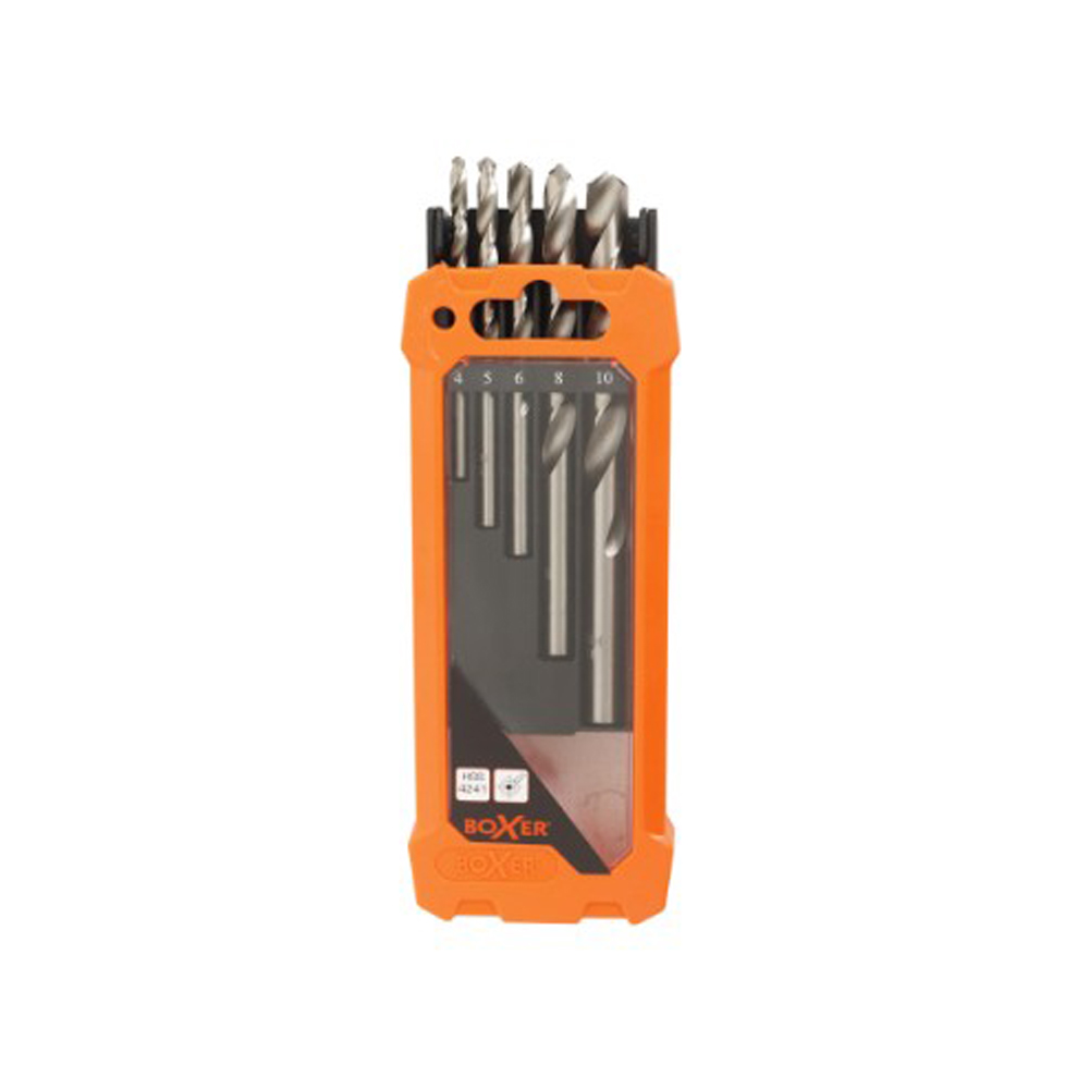 Borrsats med 5 borr för stål och stålgods, legerat och olegerat, gjutjärn, tempergods, kulgrafitjärn, sinterjärn, nysilver, grafit, icke-järnmetaller, plast med 19 borr i följande storlekar.
