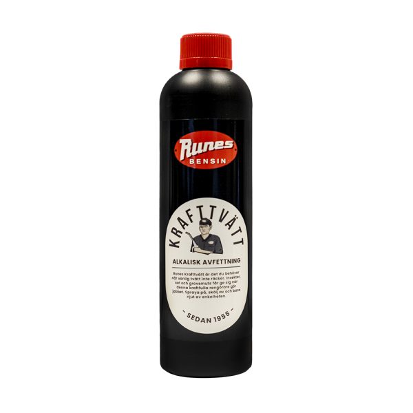 Runes Krafttvätt är ett effektivt alkaliskt rengörings-/avfettningsmedel för alla typer av fordon såsom entrepenadmaskiner, person- och lastbilar mfl. Avlägsnar effektivt insekter, sot, grovsmuts och vegetabiliskt fett.